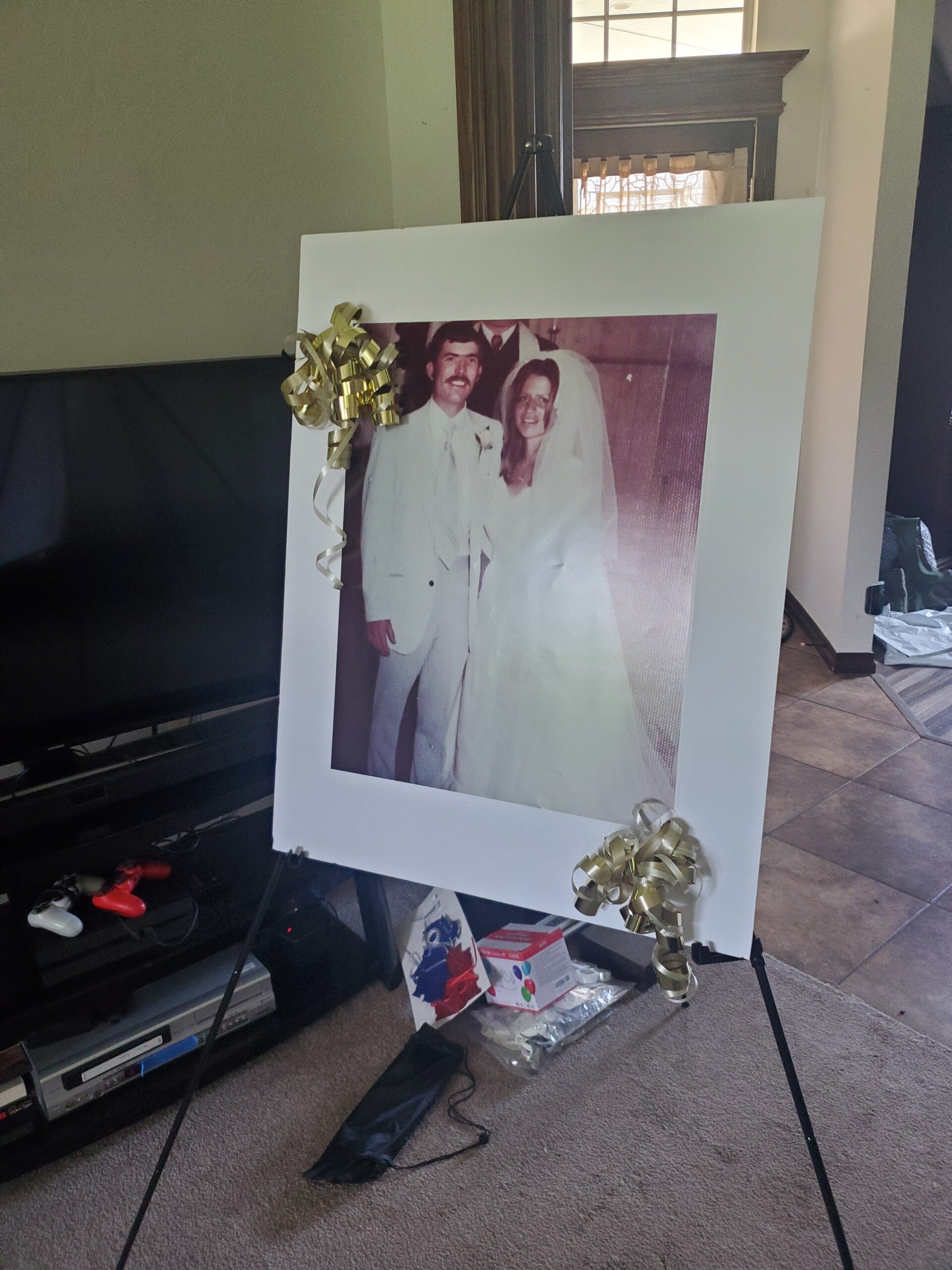 A couple of weeks before the big anniversary, Dad announced he would like to get the Adkins family together for a Family photo. I was asked to coordinate it.  Dad repeatedly said this is NOT a party.  This is just a get-together. Pictures, Pizza, maybe cake, and then everyone goes home.  That is it.