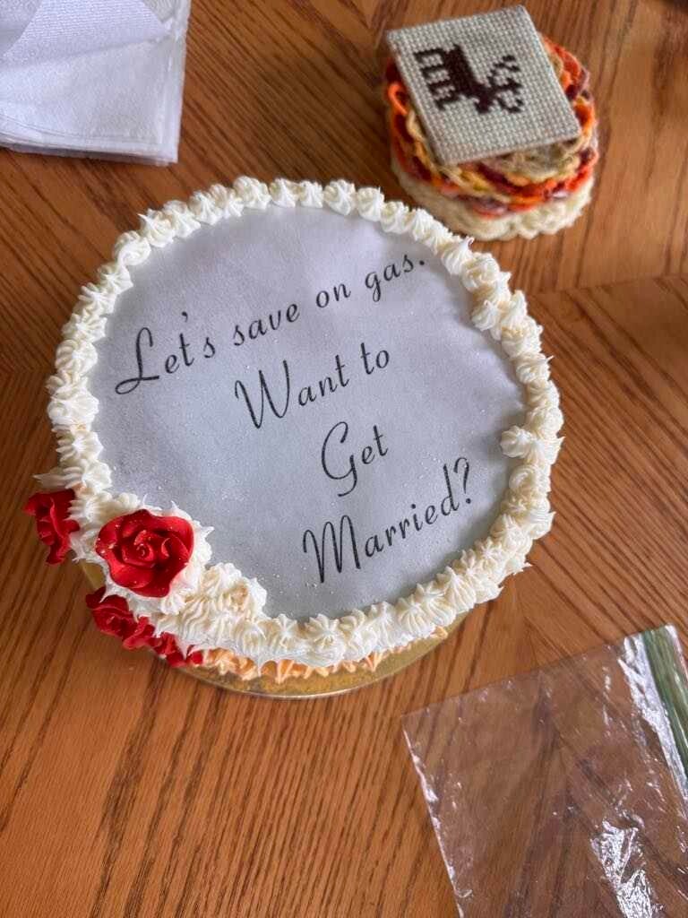 The day started out innocently enough.  With Cliff's help, family photo's commenced, per Dad's instructions. Then pizza, as planned.  But then things went awry!  I gathered everyone around and told them from this moment on, this was the Wade, Shelby, Cliff and Aubrey show! To Dad's horror, a cake came out.  Then two, then three! Shelby had made Mom pineapple upside-down cupcakes, Cousin Shayla helped us by making sugar-free chocolate cake, and then, of course, there was the official anniversary cake.  Cliff and I made this one. It was meant to be the center stage show cake and didn't disappoint!  With "Let's save on gas. Want to get married?"  printed at the top of the cake, Mom daringly lit it on fire!  With ooo's and ahhhh's, the top of the cake burned to reveal their wedding photo underneath! It was a showstopper!  Super fun!  Luckily, the cupcakes, chocolate cake, and cookies were delicious, because the show cake, though pretty, had a tinge of burnt marshmallow taste to it. It was just ok, but we ate it all up anyway!